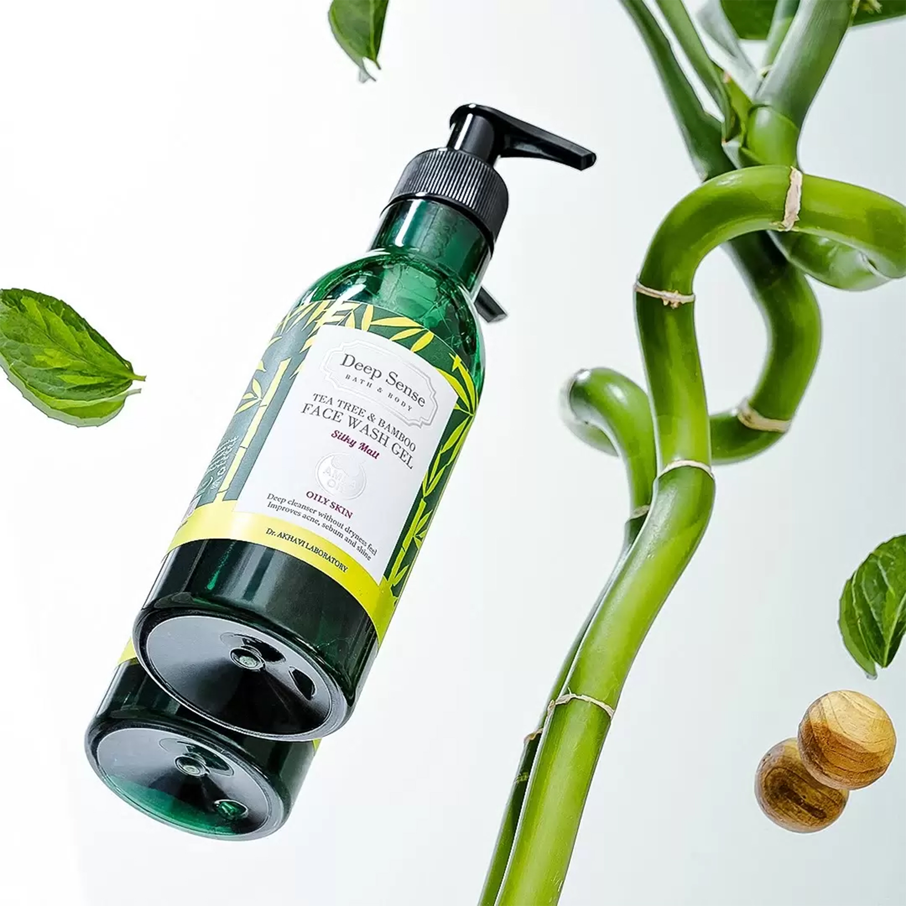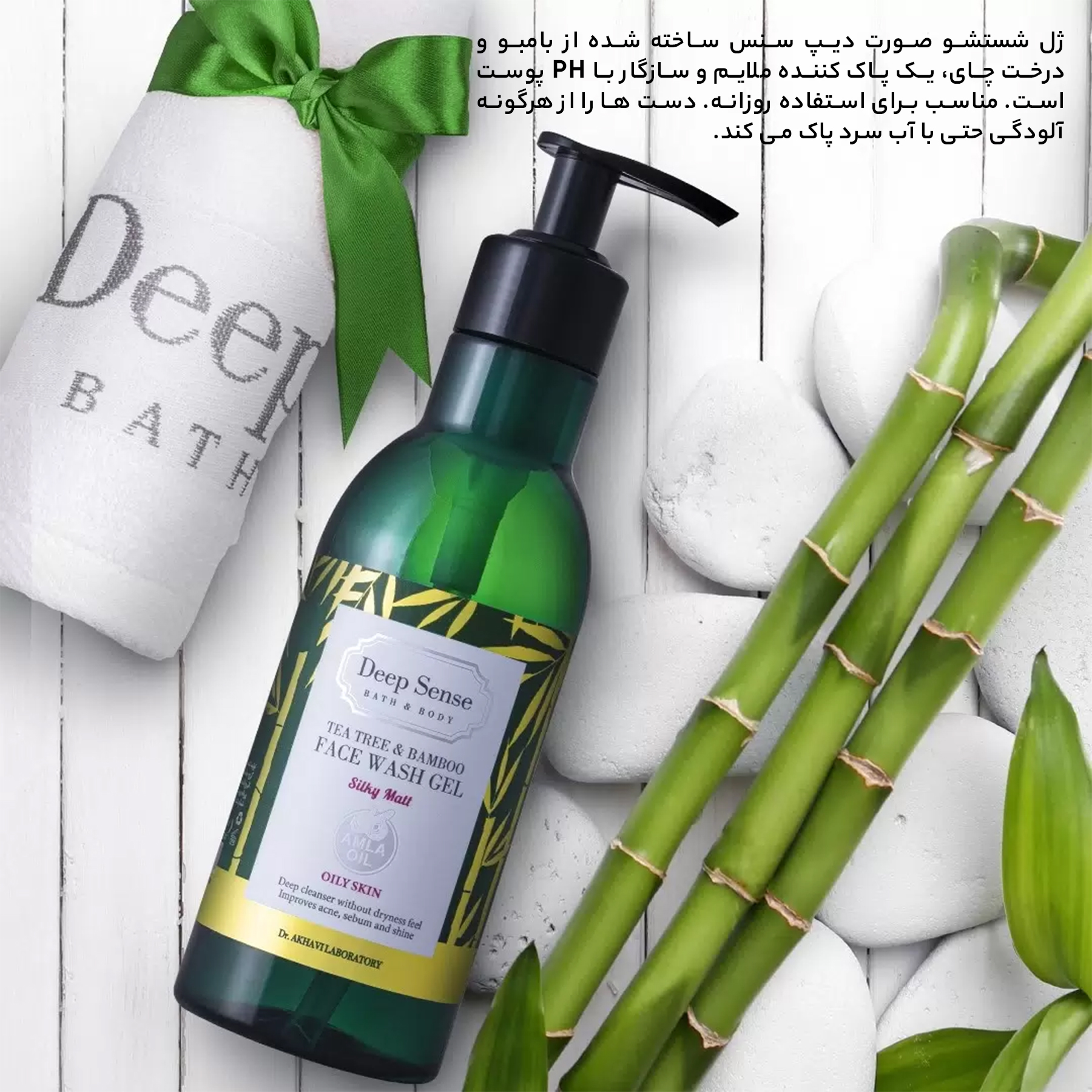 • ژل شستشوی دیپ سنس مدل درخت چای و بامبو: مناسب برای پوست‌های چرب و مستعد جوش